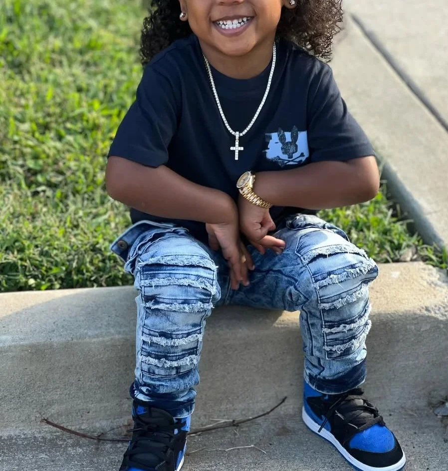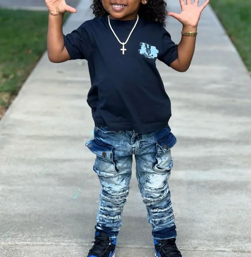 2026 Trending Product Short Sleeve and Multiple Pockets Kids Jeans 2 Piece Outfits Casual Track Suit Kids Clothing Set